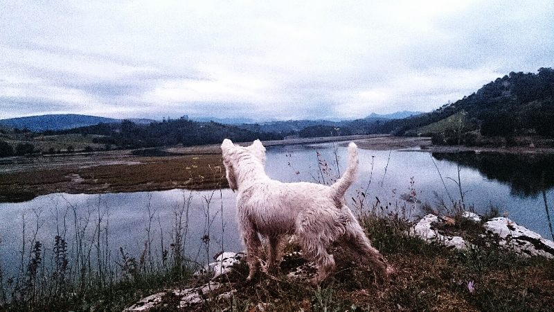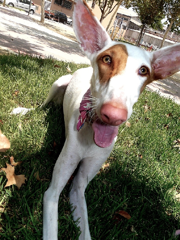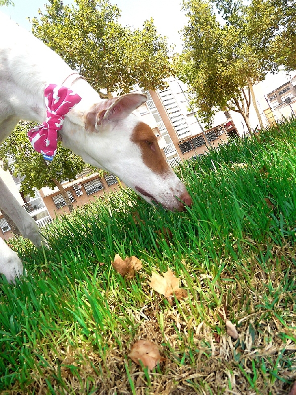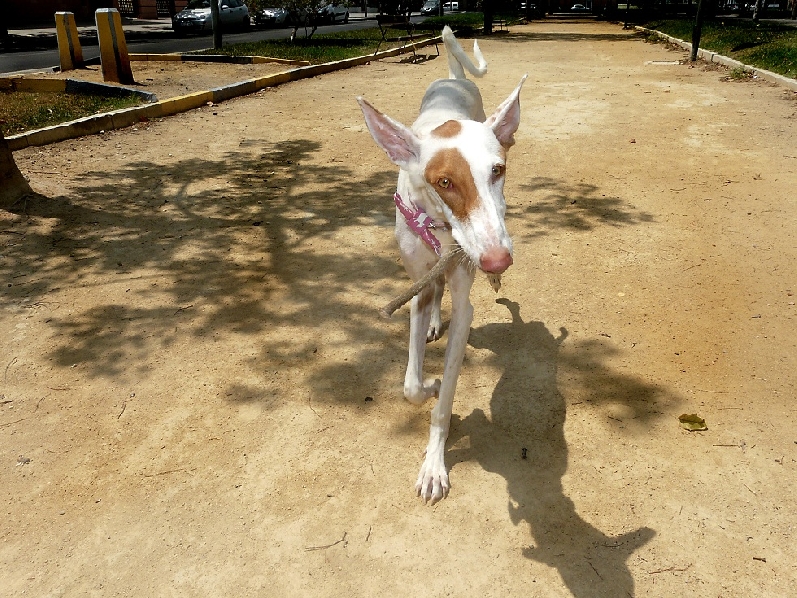 Cleo de paseo con su palo