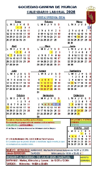 CALENDARIO LABORAL 2026.NUEVO HORARIO