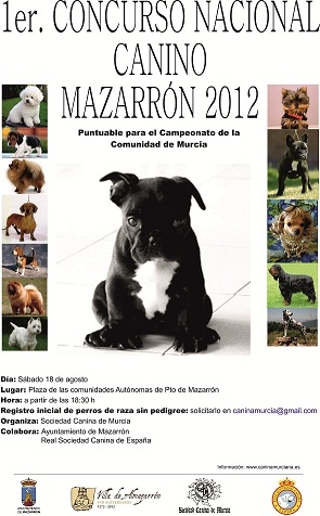 El pasado 18 de agosto, sábado por la tarde se celebró en Puerto Mazarrón, su I Concurso Nacional Canino, en el que cabe destacar la masiva presencia de público que abarrotó la Plaza de las Comunidades, a lo largo de la parte final de la tarde hasta que finalizó, casi la 12 de la noche.
